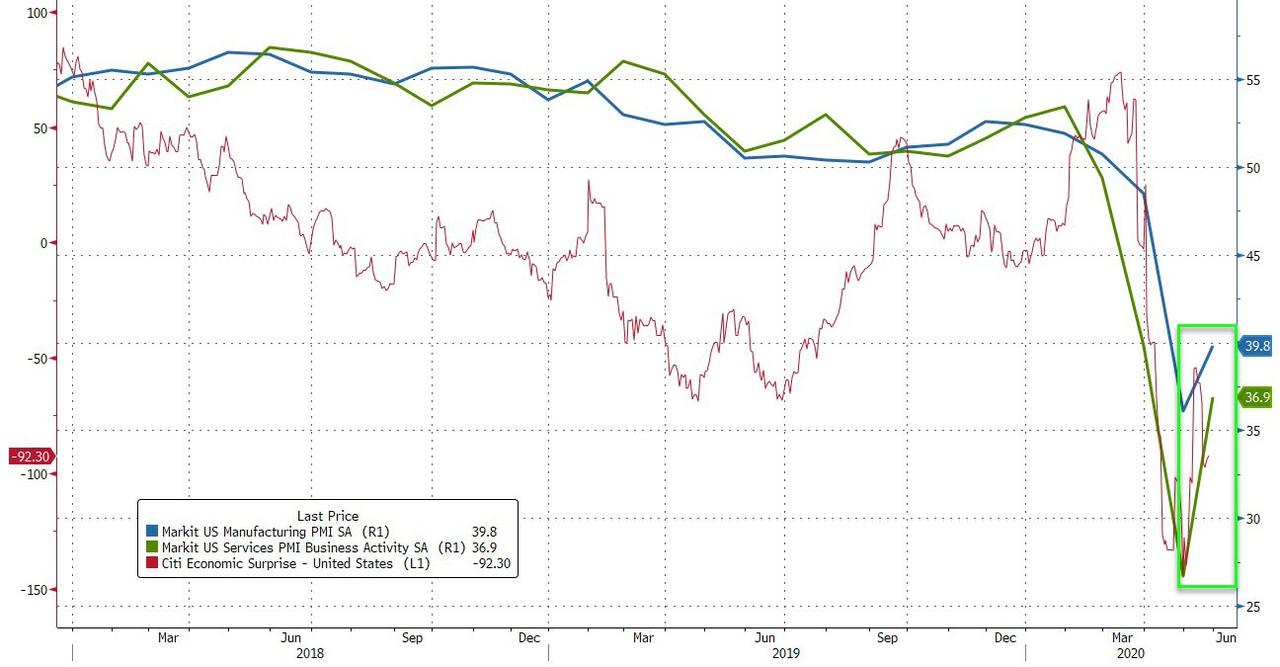 Despite Soft Survey Data Rebound In May, PMI Signals 37% Collapse In US GDP