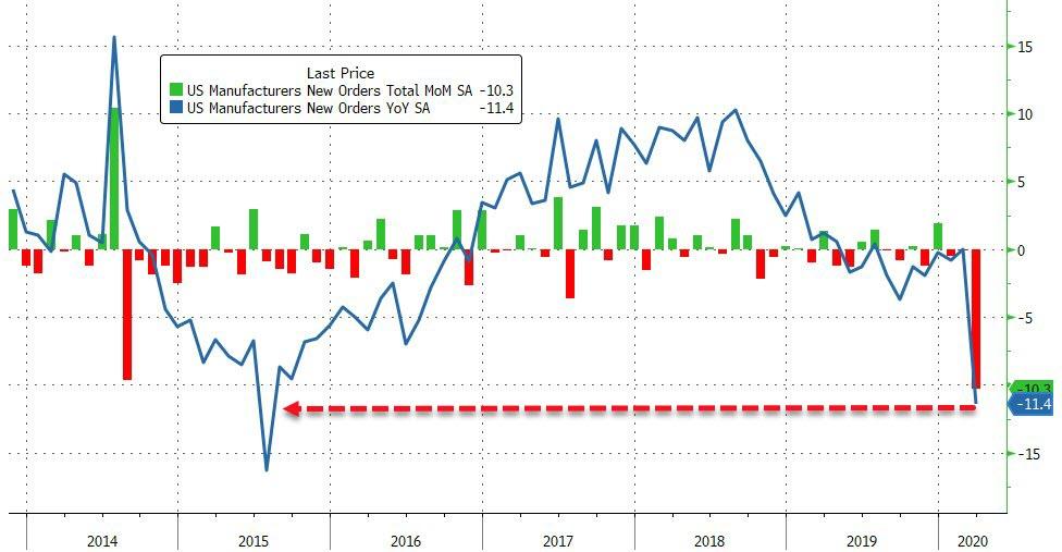 ZeroHedge - May 4th 2020 10:08am EDT US Manufacturers New Orders Crash BY Most Ever (And April Will Be Worse) Amid collapsing employment, crashing sentiment signals, and carnage in any hard data signals around the world, it is no surprise that analysts expected a 9.7% MoM plunge in factory orders in March (still before the major lockdowns in April). But the actual […]
