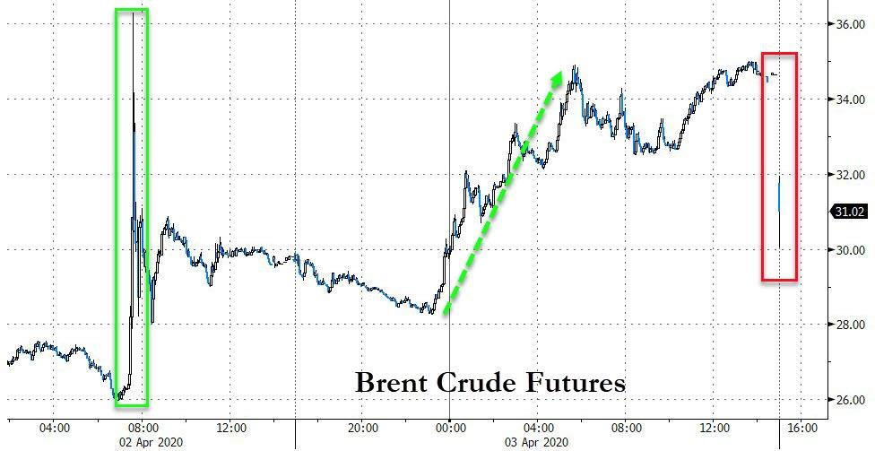 ZeroHedge - Apr 5th 2020 6:14pm EDT Crude Crashes Over 10% After OPEC+ Meeting Delays Crude prices are plunging early in Asian trading with Brent down 12% following a delay to the much-hoped-for OPEC+ meeting (due tomorrow, Monday, but now pushed off until Thursday). As Ransquawk details, an OPEC+ call that was scheduled for Monday has been delayed until Thursday, amid […]