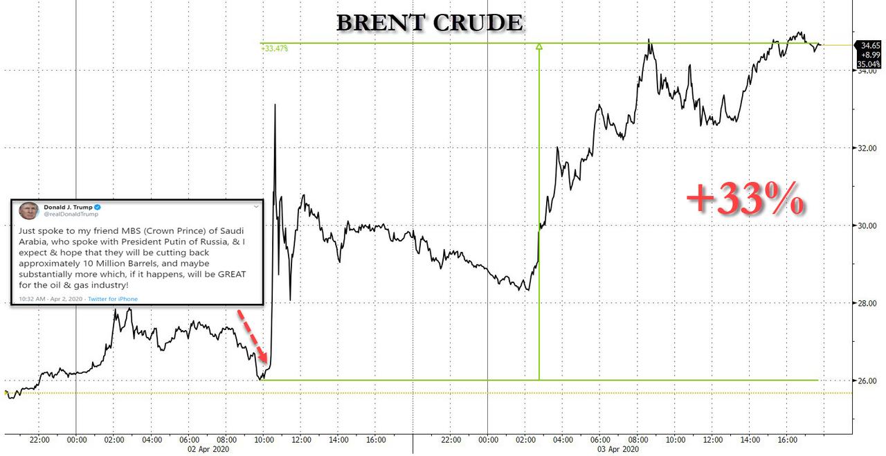 ZeroHedge - Apr 4th 2020 11:12am EDT After Record Rally, Oil Faces Collapse As New Feud Erupts Between Saudis And Russia; Monday OPEC+ Meeting Cancelled In retrospect, trading on a Trump tweet may not have been the best idea. On April 2, in what initially appeared to be a belated April fool’s joke, the US president tweeted “Just spoke to my friend […]