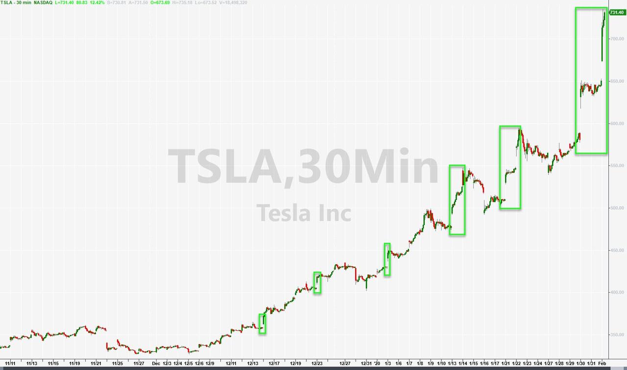 ZeroHedge - Feb 3rd 2020 11:31am EST TSLA Goes Full AOL – Explodes 25% In 3 Days TSLA shares are exploding higher once again today as it appears another hedge fund pukes its shorts into this exponential run. As short interest is eviscerated… The catalysts for this latest move – according to the narrative machine – are numerous… Earlier today, Panasonic, which makes […]